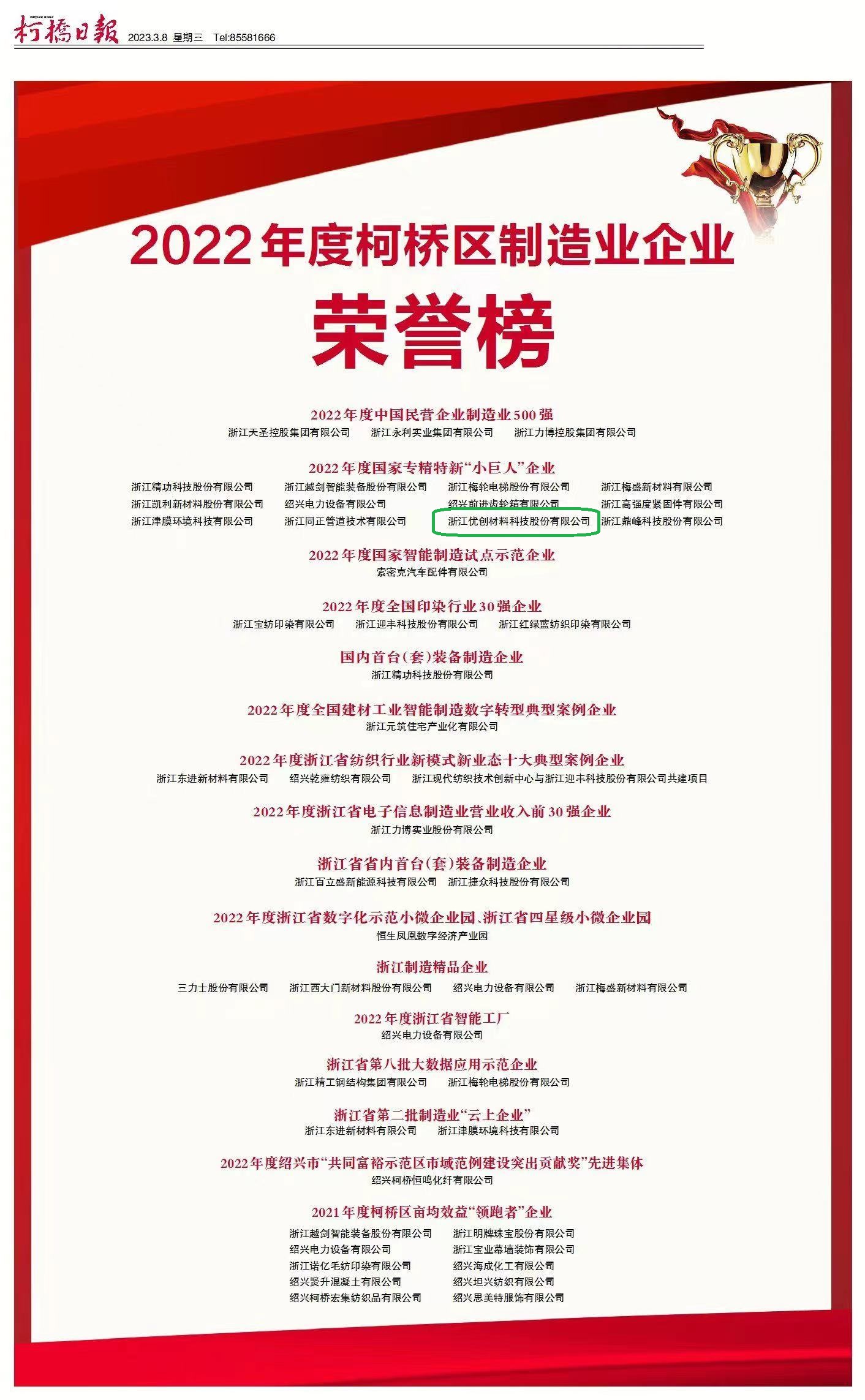 • 喜訊!浙江優(yōu)創(chuàng)材料榮獲2022國(guó)家級(jí)專精特新“小...